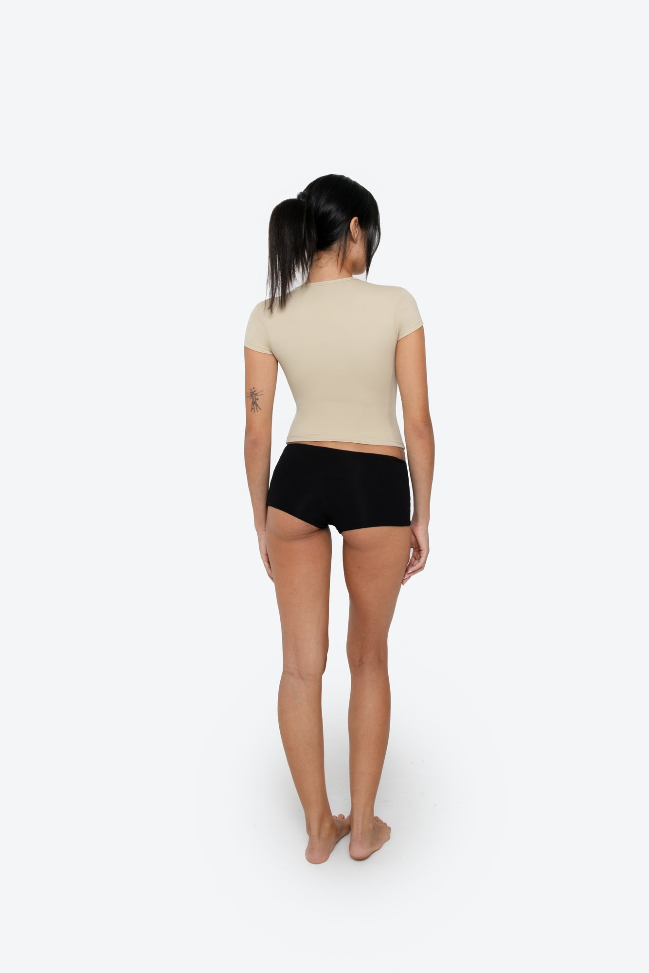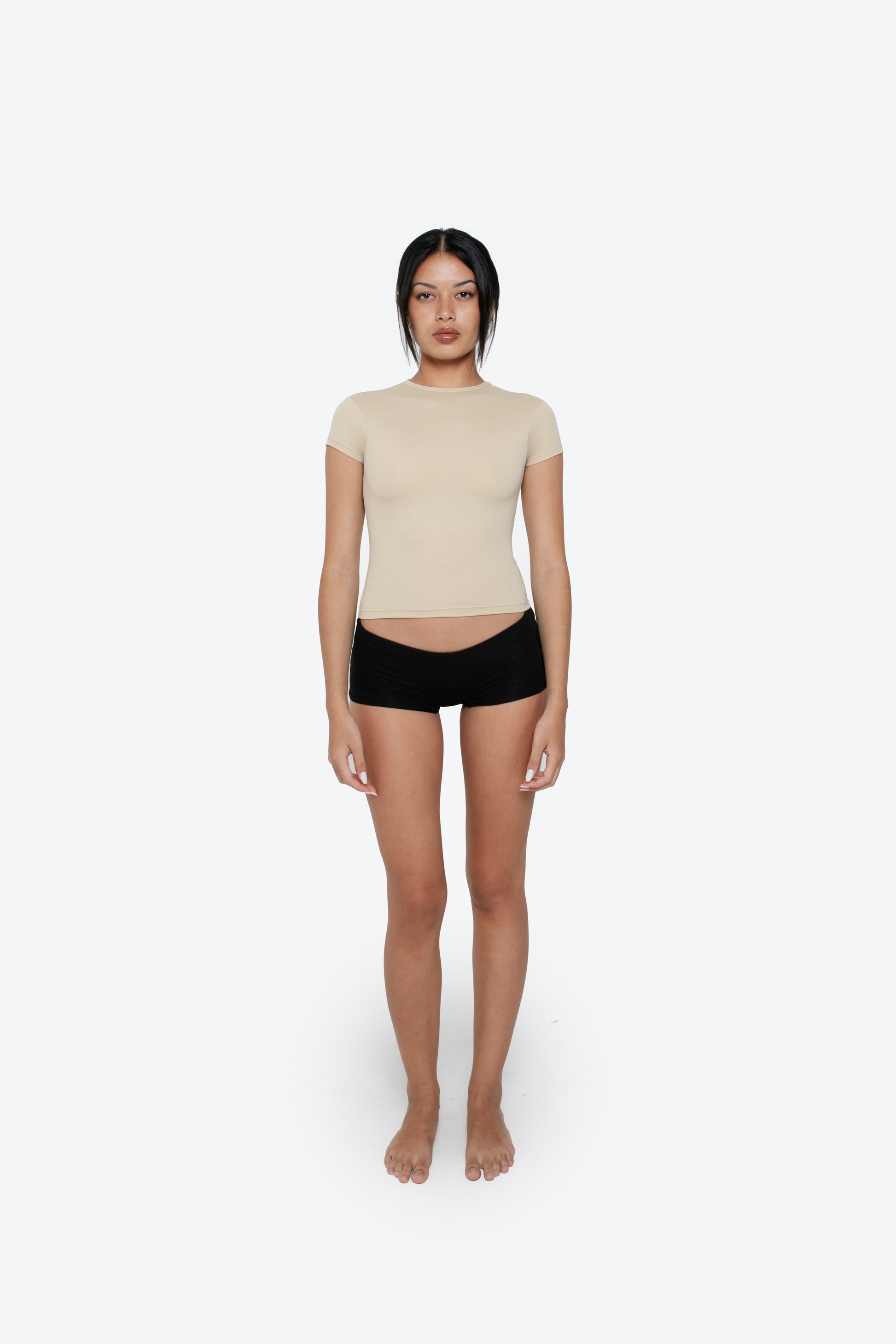Cut from our Eco-Stretch Sculpt Fabric, this baby tee offers the perfect blend of softness and support. The gently compressive feel creates a clean, close-to-body fit, while the structured finish holds its shape through every wear. Designed to elevate even the simplest of outfits.