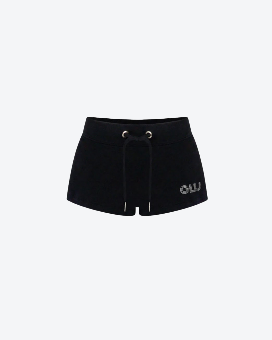 Our refined mini short with a lived-in softness. Cut from baby French terry for a soft and cozy feel, while a structured waistband creates a smooth, secure fit. Metal eyelets, long ties, and a minimal silhouette gives a modern, elevated finish. A rhinestone GLU logo details the side adding a subtle hint of shine. Playful, but refined. Designed for every day.